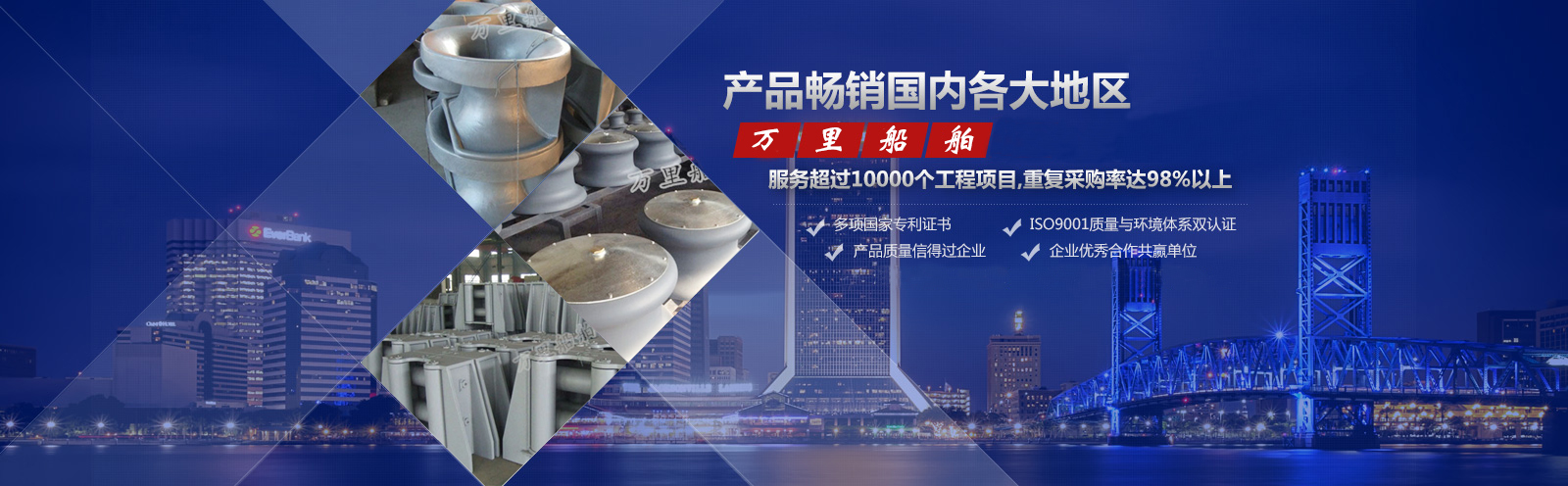 泰州市萬里船舶機械制造有限公司位于姜堰市西郊橋頭工業(yè)集中區(qū),東臨寧靖鹽高速公路,南傍寧啟鐵路及328國道,距泰州火車站10公里,交通十分便利。 本公司是一家研制生產(chǎn)各類船用系泊設備、舾裝設備的專業(yè)廠家,所生產(chǎn)產(chǎn)品品種齊全、質(zhì)量可靠。其中導纜器、導纜滾輪、導纜孔、帶纜樁、棄錨器、人孔蓋、導鏈滾輪廣泛應用于國內(nèi)各大船廠,同時外銷日本、韓國、西班牙、意大利、臺灣等國家及地區(qū)。本公司已獲得中國(CCS)船級社認可、英國(LR)船級社認可,美國(A···
